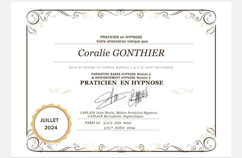 Je suis ravie de vous annoncer ma réussite à l’examen de d’hypnopracticienne.